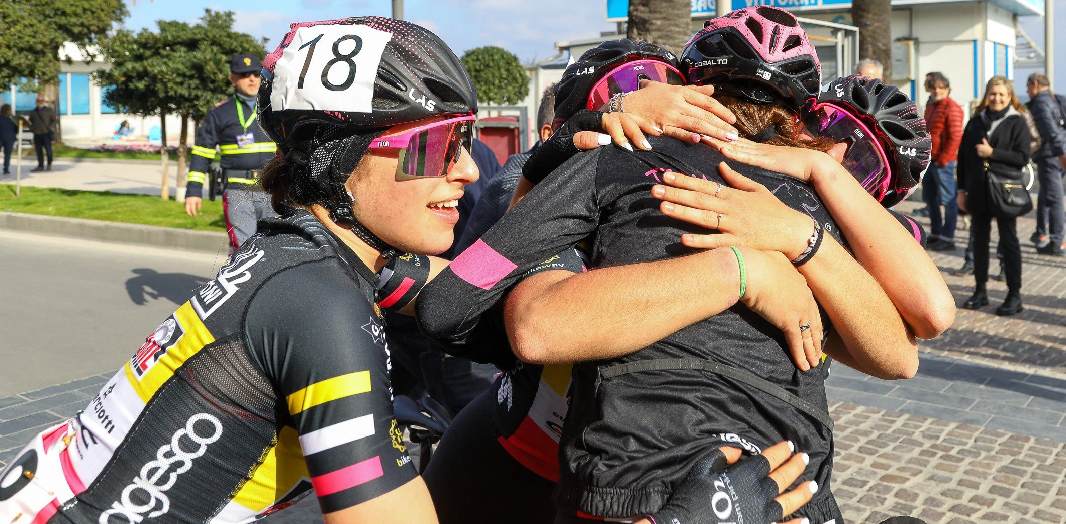 Inizia con il botto la stagione su strada della Bft Burzoni VO2 Team Pink, formazione piacentina che ha inaugurato il 2023 con una vittoria. Oggi (domenica) nel terzo trofeo Città di Ceriale, nel Savonese, il sodalizio del presidente Gian Luca Andrina ha brindato all’impresa di Eleonora La Bella: laziale classe 2006 al suo primo anno in categoria, la nuova “panterina” si è imposta per distacco, presentandosi in solitaria sul lungomare della cittadina ligure. A 26 secondi, la volata di gruppo per la piazza d’onore, andata alla trentina Sara Piffer (Team Wilier Chiara Pierobon) davanti alla lombarda Martina Testa (Canturino 1902). L’attacco decisivo è scattato in solitaria a cinque chilometri dal traguardo, con la ciclista di Anagni risultata poi imprendibile per le avversarie.
