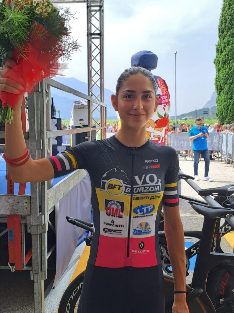 La ciclista laziale ha sfoderato una prova di qualità, chiudendo con il tempo di 24 minuti 28 secondi 86 (media 35,54 chilometri orari), cedendo solamente alla favorita di casa (e di un anno più grande) Alice Toniolli (Breganze Millenium) che l’ha preceduta di poco più di 12 secondi. Completa il podio un’altra atleta del sodalizio vicentino, Alice Bulegato. Per la formazione guidata dai ds Stefano Peiretti e Vittorio Affaticati, in gara anche Linda Ferrari e Vittoria Grassi, giunte ventunesima e ventiduesima.