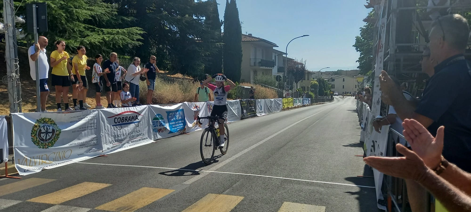 Oggi le “panterine” hanno graffiato a Comeana di Carmignano (Prato), dominando la scena nelle gare giovanili femminili. Nelle Donne Esordienti, il Ciclismo giovanile VO2 Team Pink ha festeggiato l’impresa di Michela Zucca: la pavese di Magherno classe 2008 ha conquistato la sua prima vittoria in categoria coronando una bella fuga solitaria e arrivando da “regina” sulla finish line. Alle sue spalle, la romagnola Margot Buldrini (Bicifestival) – a un minuto 40 secondi – mentre terza è arrivata la “panterina” reggiana Serena Zannoni. A completare la festa di squadra, la conterranea compagna di squadra Sara Veneri, ottava.