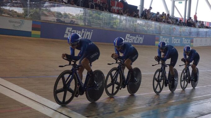 Queste ultime tre, in mattinata – insieme alla cremonese Federica Venturelli (riserva Francesca Pellegrini) – hanno fatto registrare il terzo miglior riscontro cronometrico grazie al 4′ 38″ 953, dietro alla Francia (4′ 31″ 382) e al Giappone (4′ 34″ 305). Il quartetto nipponico sarà l’avversario dell’Italia domani nella sfida del primo turno che metterà in palio per la vincitrice un posto nella finale primo-secondo posto, mentre l’altro duello sarà tra Francia (miglior tempo) e Danimarca (quarta). Il primo turno dell’Inseguimento a squadre è in programma domani alle ore 15,30 italiane (16,30 locali), mentre le finali saranno nel tardo pomeriggio.