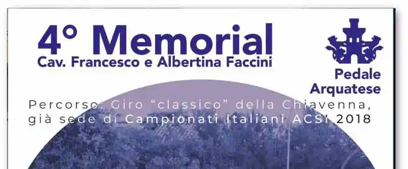 È di nuovo tempo del grande ciclismo a Castell’Arquato. Dopo tre edizioni molto fortunate, in cui tantissimi atleti si sono sfidati all’ombra del Borgo Medievale, il Pedale Arquatese e il Ristorante “Da Faccini” tornano in pista con il quarto appuntamento del “Memorial Cav. Francesco e Albertina Faccini”, sotto l’egida di ACSI Piacenza presieduta da Carlo Costa.