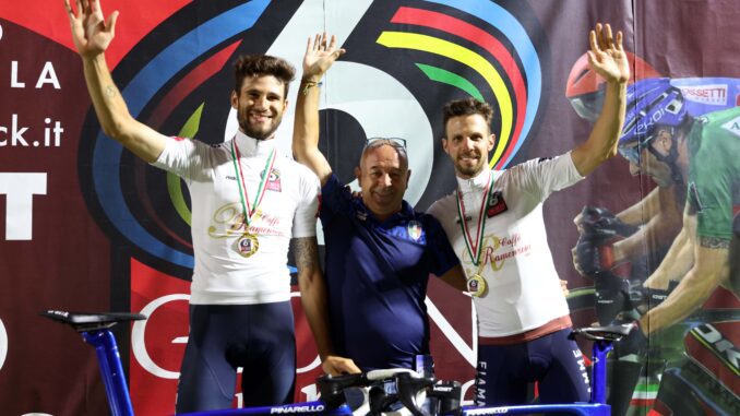 Alla fine Filippo Ganna e Michele Scartezzini ce l’hanno fatta: la coppia azzurra, a Fiorenzuola in gara con la maglia “Caffè Ramenzoni”, ha conquistato in rimonta la 25^ edizione della 6 Giorni delle Rose. Per loro anche i punti per il ranking Uci della madison, dal momento che la gara a coppie valeva come prova di classe 1 Uci per questa specialità. Ganna e Scartezzini hanno conquistato la vittoria nella generale con 69 punti, davanti ai polacchi Bartosz Rudyk e Daniel Staniszewski (Acef), arrivati a 64. Terza piazza per Stefano Moro e Matteo Donegà (Alu Tecno), che avevano iniziato la madison finale da leader della generale.