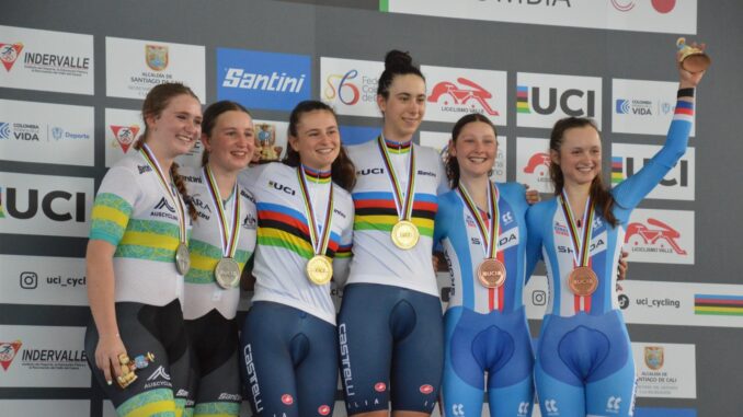 Si chiude con una prova magistrale, una medaglia d’oro e il conseguente titolo iridato la straordinaria avventura delle atlete della Bft Burzoni VO2 Team Pink ai Mondiali Juniores su pista a Calì (Colombia), che si sono conclusi nelle scorse ore.