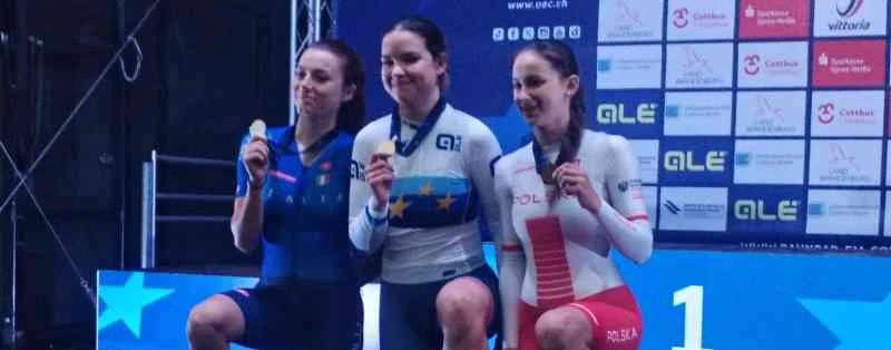 Gli Europei Juniores e Under 23 su pista di Cottbus (Germania) continuano a regalare splendide emozioni alla Bft Burzoni VO2 Team Pink. Oggi ha applaudito la prova di Linda Sanarini, padovana classe 2007 e già medaglia di bronzo mercoledì nell’Inseguimento a squadre Donne Juniores.