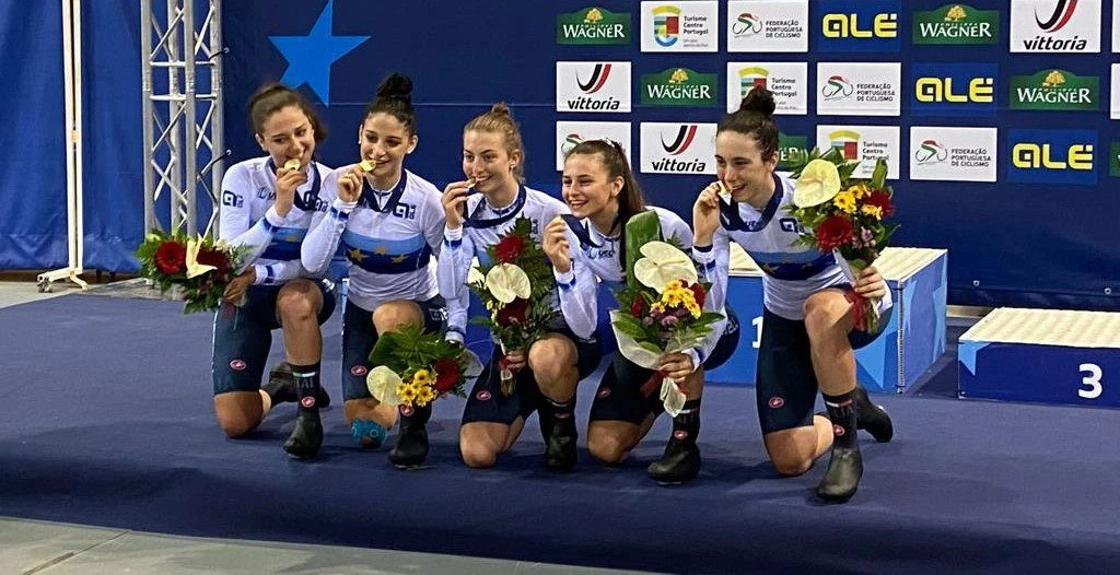 E’ un venerdì dorato quello che splende sul VO2 Team Pink, sodalizio piacentino che festeggia l’impresa delle sue ragazze in maglia azzurra agli Europei Under 23 e Juniores su pista ad Anadia (Portogallo).