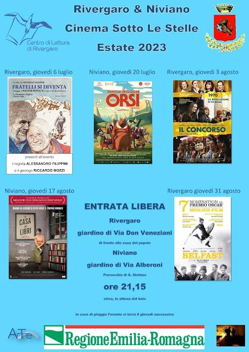 Cinema Sotto le Stelle 2023 a Rivergaro e Niviano fino al 31 agosto.