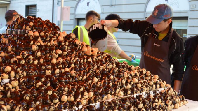 Cioccolandia quest’anno ha visto anche la collaborazione degli studenti degli istituti Marcora e Romagnosi, presenti nei vari gazebo di distribuzione dei dolci della Pro Loco ma anche in piazza Casaroli, impegnati a realizzare varie creazioni. Sempre in piazza Casaroli, nel pomeriggio, è andato in scena Cioccobimbi, novità del 2022, laboratorio dedicato ai più piccoli dove il pasticcere Maurizio Mera ha guidato una schiera di 90 bambini che si sono sbizzarriti nella preparazione di biscotti. Gli altri due pasticceri del territorio, invece, erano presenti in piazza XX settembre, il Gelatiere e Bardini, con quest’ultimo che ha vivacizzato i visitatori con una curiosa ruota della fortuna.