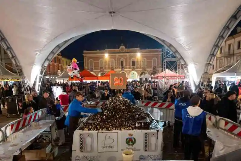 Oltre una ventina i mastri cioccolatai che hanno arricchito la manifestazione con le proprie dolcezze, accanto alle bancarelle di hobbisti, associazioni, commercianti (rappresentati anche dal Comitato Vita Centro Storico) e produttori locali. Ma il momento clou è stato come sempre il taglio del salame di cioccolato con Sergio Bertaccini, presidente della Pro Loco, insieme a Valentina Stragliati, primo cittadino di Castel San Giovanni, accompagnati dai sindaci e amministratori dei comuni limitrofi e dai presidenti Unpli Regionale e Provinciale. Oltre al salame dolce anche la piramide di profiteroles e la torta Rita per allietare i palati di tutti.