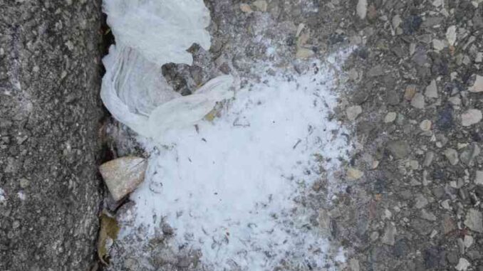Cocaina abbandonata sul marciapiede in via Ferdinando di Borbone, a Borghetto. L’involucro in cellophane da cui fuoriusciva la polvere bianca è stato notato da alcuni cittadini della zona che, tramite il gruppo di vicinato, hanno informato la Polizia locale di Piacenza.