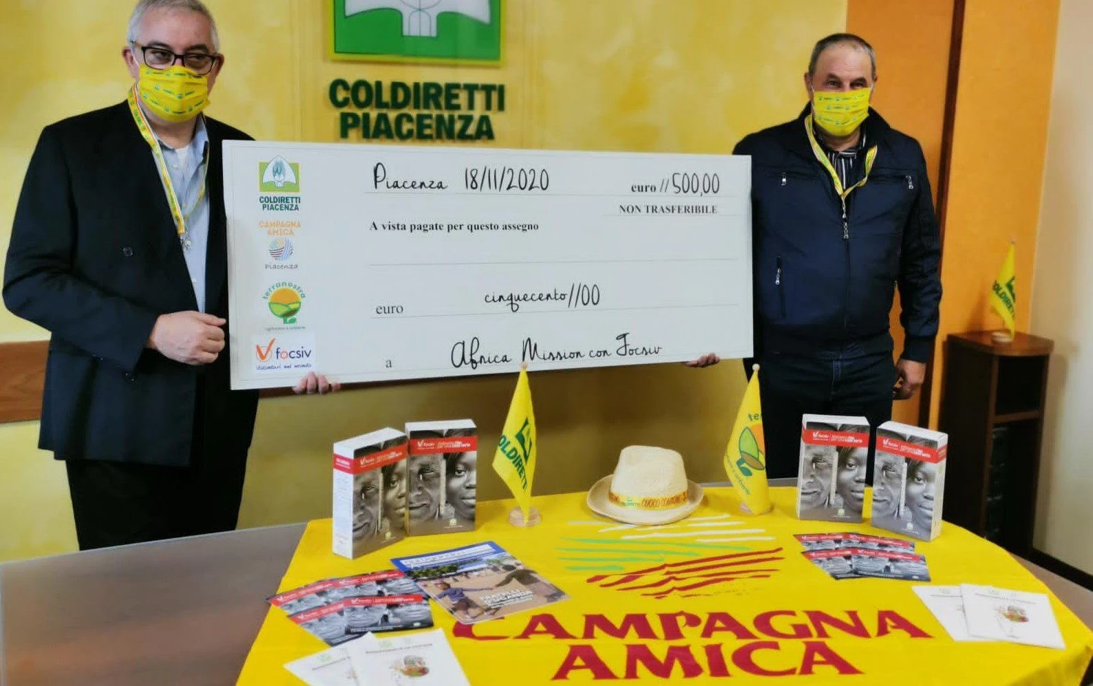La consegna dell’assegno si è svolta nella sede di Coldiretti Piacenza alla presenza del direttore di Africa Mission Carlo Ruspantini, del presidente di Coldiretti Ugo Agnelli, dell’agronomo Celestino Poggioli e della referente della campagna Elisabetta Dordoni.