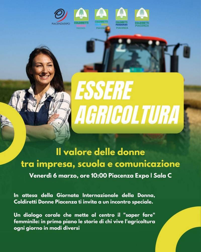 Il momento clou del palinsesto istituzionale di Coldiretti Piacenza si terrà venerdì 6 marzo, alle 10:00, nella Sala C di Piacenza Expo. In attesa della Giornata Internazionale della Donna, Coldiretti Donne Piacenza propone l’incontro: “Essere Agricoltura: Il valore delle donne tra impresa, scuola e comunicazione”. Si tratterà di un dialogo corale volto a mettere al centro il “saper fare” femminile, raccontando le storie di chi vive l’agricoltura ogni giorno in modi diversi: dall’innovazione imprenditoriale all’impegno educativo nelle scuole, fino alle nuove frontiere della comunicazione rurale.