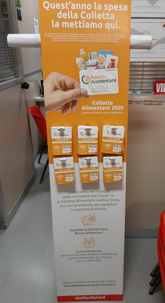 “Cambia la forma non la sostanza” della 24esima Giornata Nazionale della Colletta Alimentare: dal 21 novembre all’8 dicembre si potranno acquistare nei supermercati del territorio delle card da due, cinque e dieci euro. Queste, disposte in dei totem ben visibili all’interno del supermercato, verranno consegnate in cassa e verrà scansionato il codice relativo all’importo scelto. Sarà anche possibile fare una combinazione tra i diversi importi. Il valore complessivo di tutte le card acquistate sarà convertito in alimenti non deperibili come pelati, legumi, alimenti per l’infanzia, olio, pesce, carne in scatola e altri prodotti utili.