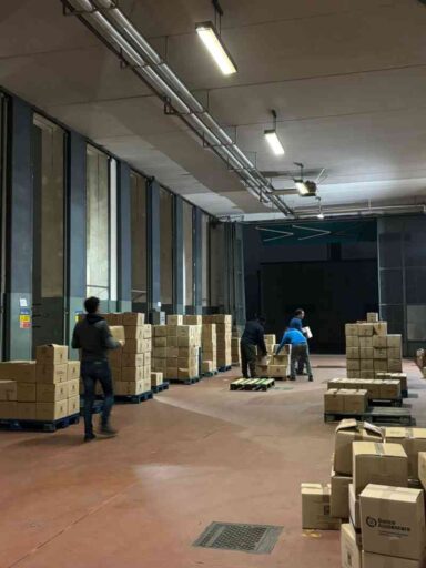 Piacenza, gli alimenti da distribuire prima delle festività natalizie. La parte rimanente verrà trasportata a Fontevivo (PR) e farà parte dei generi distribuiti durante l’anno.