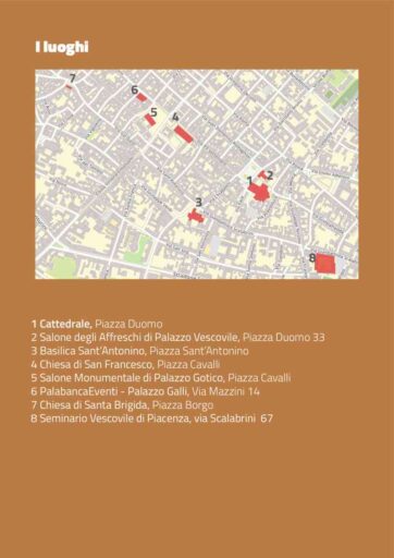 I luoghi principali della manifestazione, oltre alla basilica del santo a Bobbio, sono la Cattedrale di Piacenza e la chiesa di Santa Brigida, dedicata a una delle principali sante irlandesi. Quest’ultima chiesa ospitava nei secoli scorsi un luogo di accoglienza dei pellegrini dal nord Europa ed è collocato su uno snodo della Via Francigena.