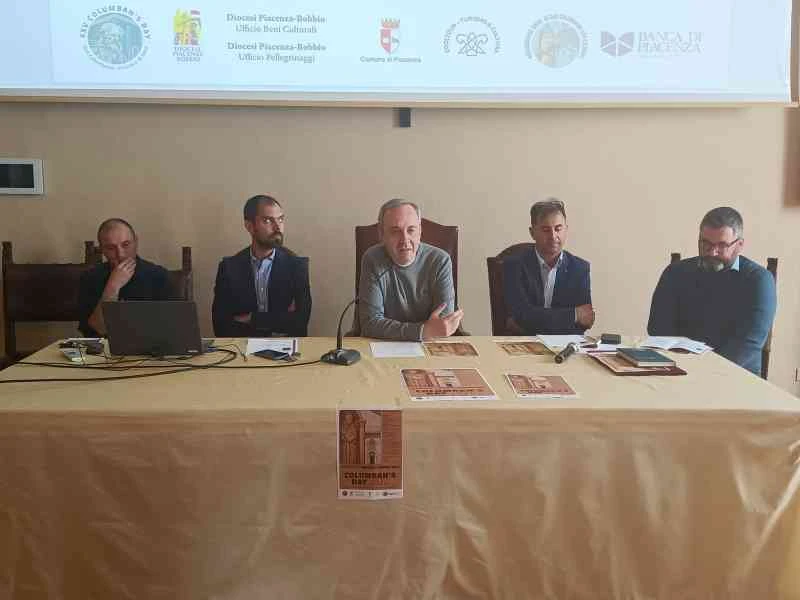 Alla conferenza stampa di presentazione nella Curia vescovile di Piacenza sono intervenuti don Giuseppe Basini, vicario generale della diocesi, Mauro Steffenini, presidente dell’associazione San Colombano per l’Europa, l’architetto Manuel Ferrari, direttore Ufficio Beni culturali ecclesiastici della diocesi, don Paolo Capra, parroco a San Giovanni in Canale e Santa Brigida, e Dario Carini, cerimoniere vescovile.