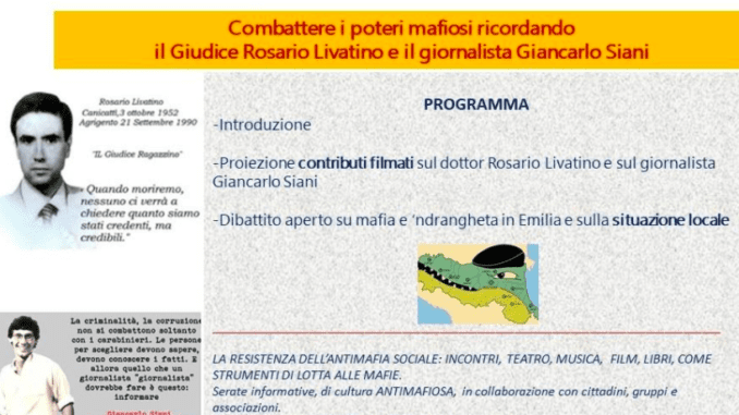 “Combattere i poteri mafiosi ricordando il Giudice Rosario Livatino ed il giornalista Giancarlo Siani”. Le serate di cultura antimafiosa, promosse da 100×100 in movimento-APS presso la Biblioteca di strada del Comune di Piacenza, proseguono martedì 29 settembre 2020 alle ore 21.00.