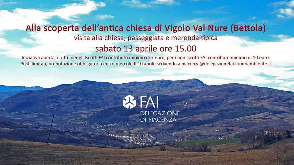 Con il Fai alla scoperta dell’antica Chiesa di Vigolo Val Nure. Appuntamento sabato 13 aprile alle 15.