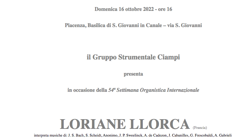 Concerto di Loriane Llorca il 16 ottobre in occasione della 54ª Settimana Organistica Internazionale.