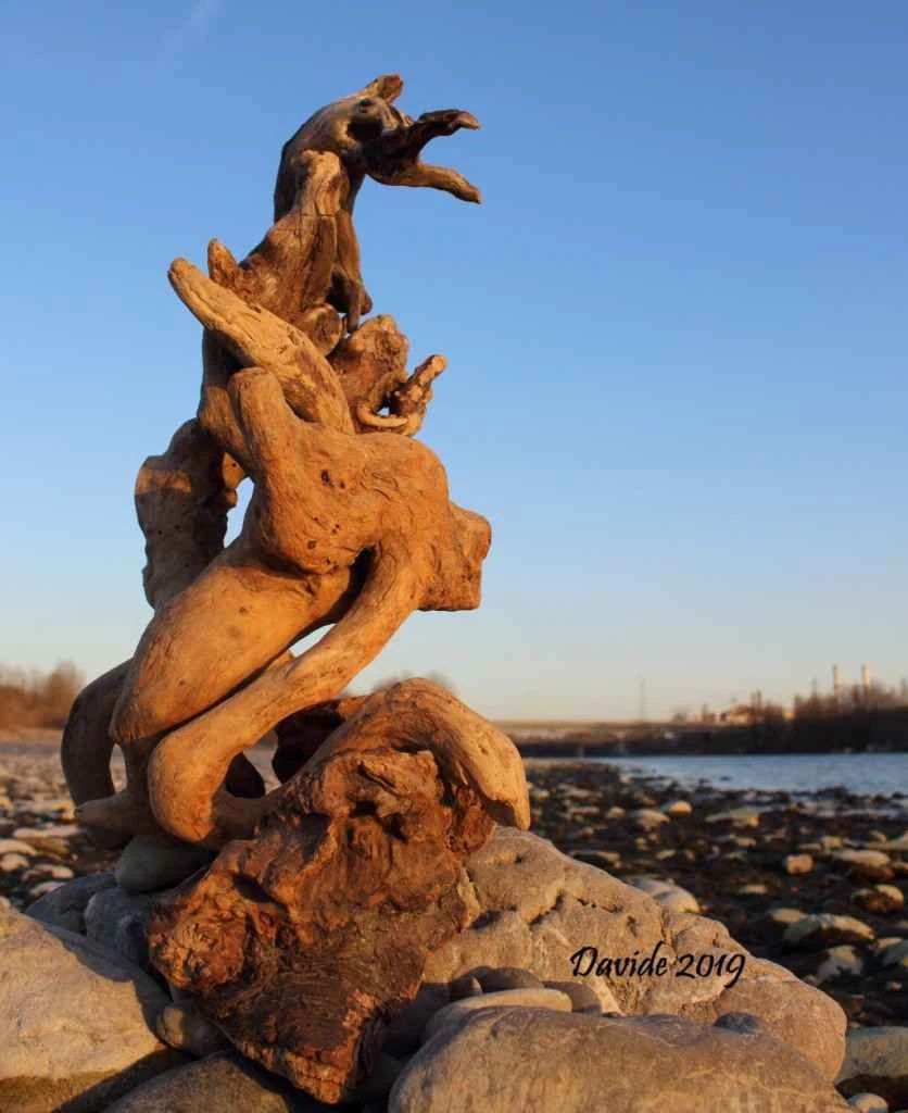 Si tratta di radici, tronchi e rami recuperati sui greti dei torrenti e sulle spiagge, levigati naturalmente dall’acqua e dalle rocce.