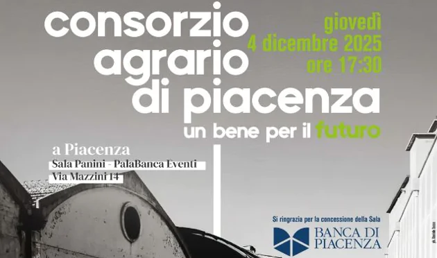 Giovedì 4 dicembre alle 17,30 nella Sala Panini del PalabancaEventi in via Mazzini 14, si terrà il convegno “Consorzio Agrario di Piacenza. Un bene per il futuro”, con interventi di Claudia Molinari, Francesca Santarella, Massimo Bottini e Domenico Ferrari Cesena. Coordinerà Patrizia Soffientini.