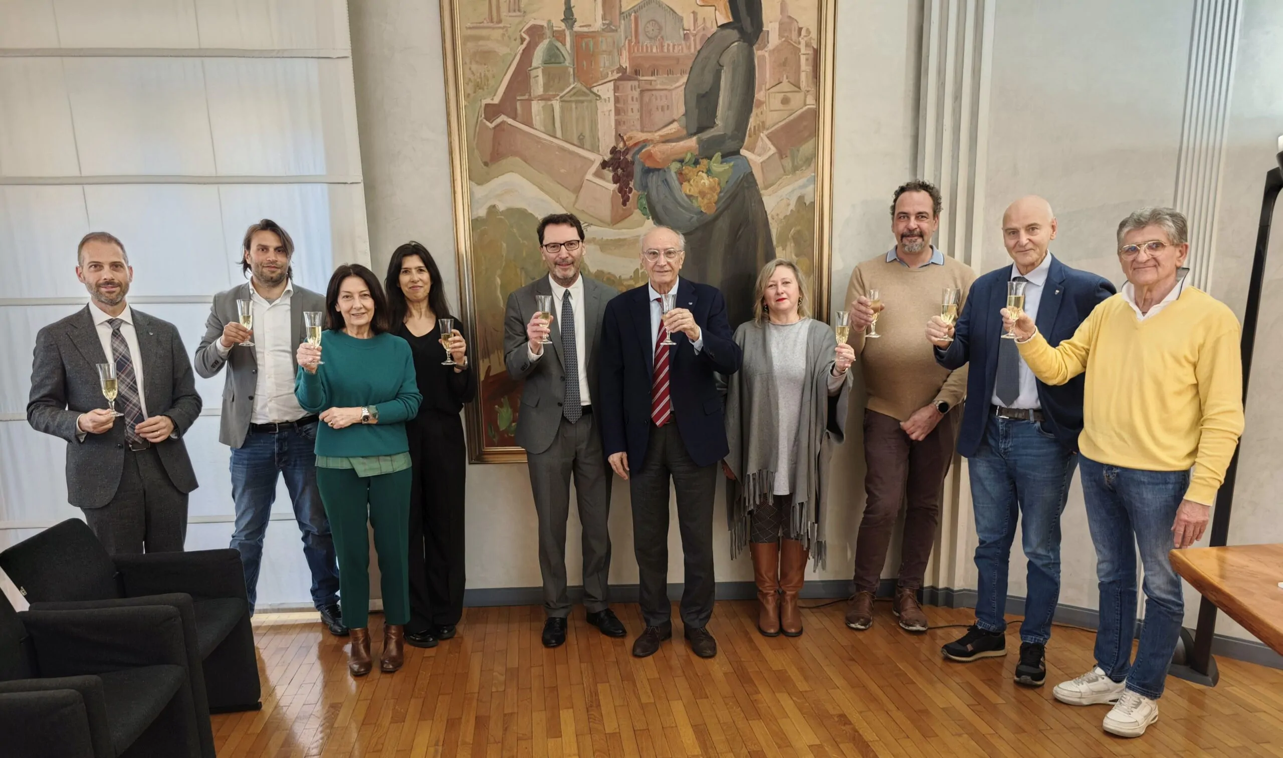 Non poteva che chiudersi con un brindisi l’incontro che si è tenuto nella Sala Ricchetti della sede centrale della Banca di Piacenza per la firma della convenzione che l’Istituto di credito di via Mazzini ha stipulato con l’Università Cattolica del Sacro Cuore, sede di Piacenza, che – attraverso il suo Centro di ricerca BioDNA – predisporrà le attività finalizzate all’iscrizione dei vitigni autoctoni Molinelli e Lisöra nei registri regionali e nazionali delle varietà di vite coltivabili (condizione necessaria per poter far uscire queste cultivar dal limbo della sperimentazione e trasformarle in materia prima per la produzione di vino per il mercato).