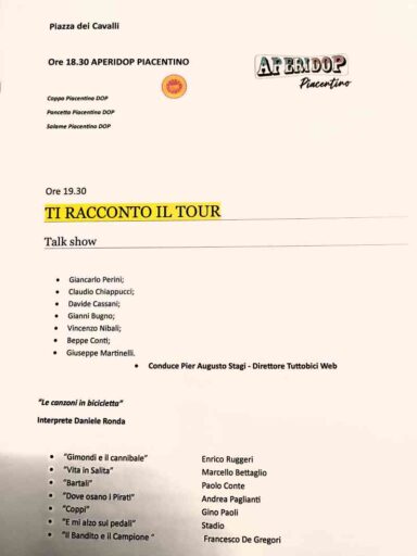 Come si evince, si tratta di un’edizione tutta incentrata al Tour de France, la grande tappa piacentina che avrà luogo il primo luglio. Non a caso, la 16esima edizione avrà come titolo d’accompagnamento “Il Vento del Tour”.