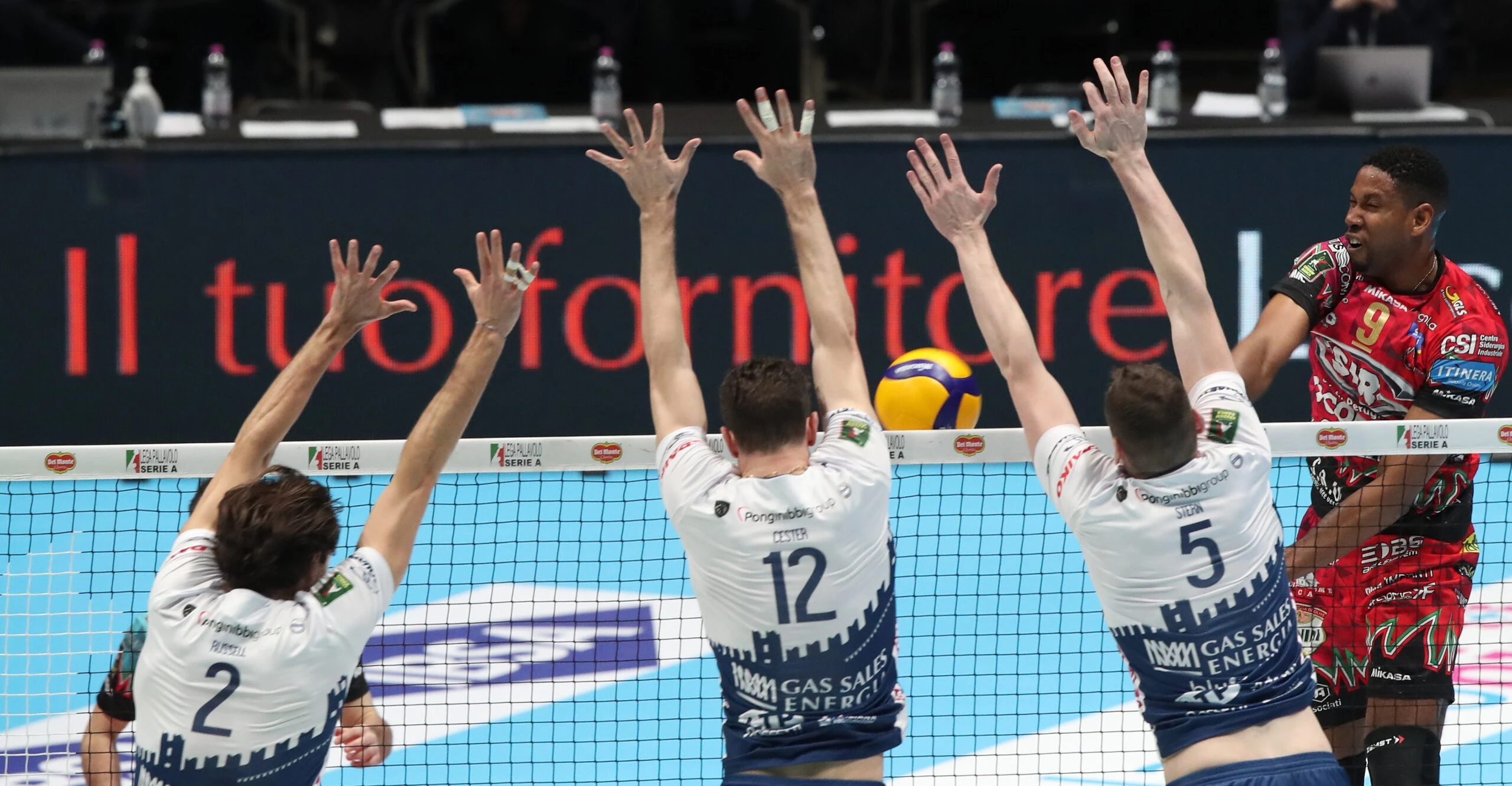 Piacenza parte alla grande appoggiandosi su una battuta di altissimo livello, come confermano i tre ace consecutivi di Brizard che consegnano ai biancorossi il 4-0. Perugia è sorpresa e la Gas Sales Bluenergy tiene altissimo il ritmo giocando un’ottima pallavolo e costringendo gli umbri a rincorrere fino al 14-12. Anche quando gli avversari pareggiano i piacentini continuano a correre e si presentano di nuovo avanti con Rossard che regala il 16-14. Si gioca punto a punto e per la prima volta la squadra di Grbic mette la freccia con un attacco out di Lagumdzija del 17-16. Bernardi manda in campo Stern, un attacco dello sloveno a un muro su Leon valgono la nuova parità a 22 ma nel finale la serie al servizio dell’attaccante umbro vale il 25-22 di Perugia.