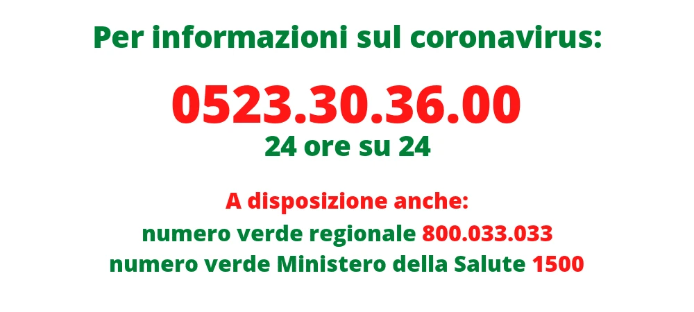 Le persone residenti nella provincia di Piacenza che dal 1 febbraio sono transitate o hanno sostato nei comuni di Bertonico, Casalpusterlengo, Castelgerundo, Castiglione d’Adda, Codogno, Fombio, Maleo, San Fiorano , Somaglia, Terranova dei Passerini e Vò, devono contattare il Servio di Igiene pubblica dell’Azienda Usl di Piacenza inviando una mail a