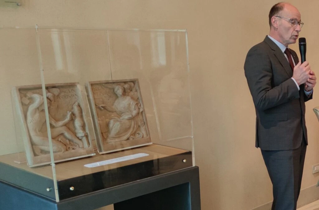 «Un’occasione per lavorare insieme nel produrre cultura in omaggio a Corrado Sforza Fogliani». Questa l’unanime significato che è stato attribuito alla cerimonia di consegna alla Galleria Ricci Oddi, da parte della Banca di Piacenza, avvenuta ieri sera al PalabancaEventi (in Sala Panini, presente la moglie del compianto presidente Maria Antonietta De Micheli), dei rilievi preparatori delle due formelle di Antonio Maraini (1886-1963), realizzate nel 1931 e simboleggianti l’allegoria della Scultura e della Pittura per l’ornamento dell’ingresso monumentale della Galleria di via San Siro. «Studi preparatori – ha ricordato Roberto Tagliaferri nel portare i saluti della Banca (presenti il presidente Giuseppe Nenna, il direttore generale Angelo Antoniazzi e il vicedirettore generale Pietro Boselli) – riportati a Piacenza grazie al presidente Sforza, già con l’idea di lasciarli alla Ricci Oddi, di cui è stato consigliere d’amministrazione dal 2001, perché li valorizzasse con una corretta esposizione».