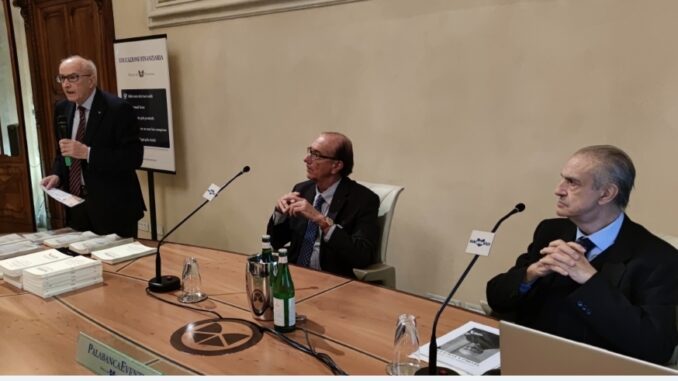 «Corrado Sforza Fogliani è stato l’esempio vivente del rappresentante di una Famiglia Storica d’Italia. Il 27 dicembre 2010 aveva ottenuto dallo Stato la massima onorificenza, Cavaliere di Gran Croce dell’Ordine al Merito della Repubblica Italiana. Ma questo non basta per dimostrare di essere un grande, un esempio, un’eccellenza che ha portato concreti risultati al vero bene della Nazione. Ogni anno, dunque, il Presidente della Repubblica premia 25 personaggi “che si sono resi singolarmente benemeriti”, segnalandosi “nell’agricoltura, nell’industria, nel commercio, nell’artigianato, nell’attività creditizia e assicurativa”. E lui, da uomo poliedrico, rappresentava tutti questi mondi ed è stato insignito il 31 maggio 2012. Per arrivare ai livelli raggiunti dal Cavaliere del Lavoro Corrado Sforza Fogliani non si nasce dal nulla, ma senz’altro aiuta – senza nulla togliere alle grandi qualità individuali – avere alle spalle una Famiglia importante». Questo quanto emerso dall’interessante relazione dello studioso Pier Felice degli Uberti su “Famiglie storiche: gli Sforza Fogliani nella storia d’Italia attraverso le vicende del Ducato di Milano e del Ducato di Piacenza”, dedicata alla memoria del compianto presidente Corrado Sforza Fogliani. Una conferenza che si è tenuta al PalabancaEventi (Sala Panini) dopo la presentazione degli Atti del convegno internazionale “I Farnese, una grande dinastia” nascita, affermazione e alleanze nella storia europea”, che si era tenuto nel 2021 nella stessa prestigiosa sede di via Mazzini per iniziativa dell’Istituto Araldico Genealogico Italiano-IAGI (rappresentato dallo stesso prof. degli Uberti) in collaborazione con la Banca di Piacenza e, in particolare, con il compianto presidente Sforza e con il patrocinio della Confédération Internationale de Généalogie et d’Héraldique.