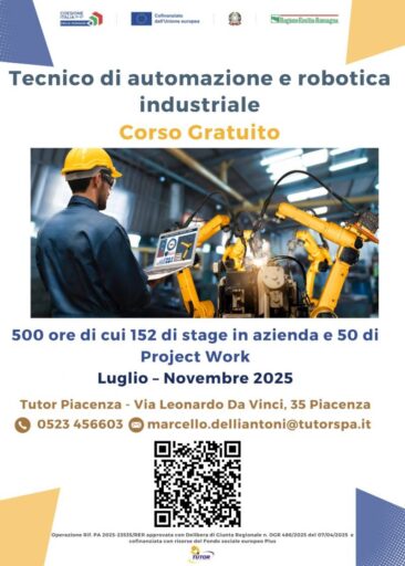 Accesso al mondo del lavoro: al via le iscrizioni per il corso gratuito per Tecnico di automazione e robotica industriale, organizzato da Tutor Piacenza. Infatti sono diverse le aziende a richiedere queste capacità per un settore in forte espansione.