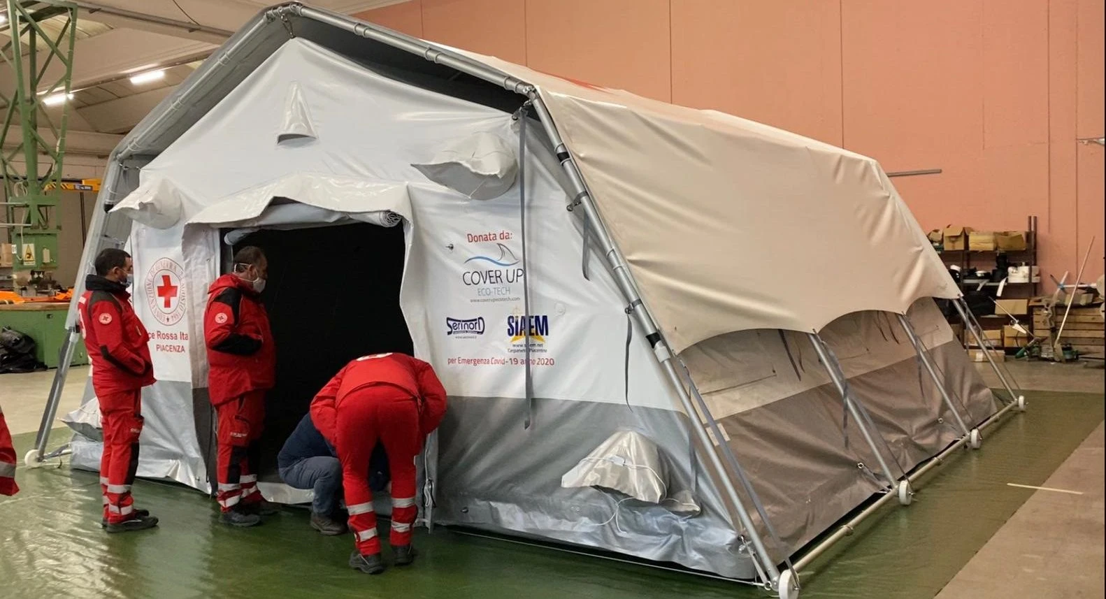 Lo scorso sabato 5 dicembre 2020, tre aziende del territorio, la Cover Up Eco-Tech di Guardamiglio (Lodi), la Serinord di Calendasco (Piacenza) e la Siaem di Carpaneto (Piacenza), hanno deciso di sostenere il sistema sanitario piacentino. Hanno realizzato una tenda campale polifunzionale che hanno donato alla Croce Rossa di Piacenza, con una decina di volontari che hanno preso parte alle manovre di addestramento per imparare a montare la struttura campale.