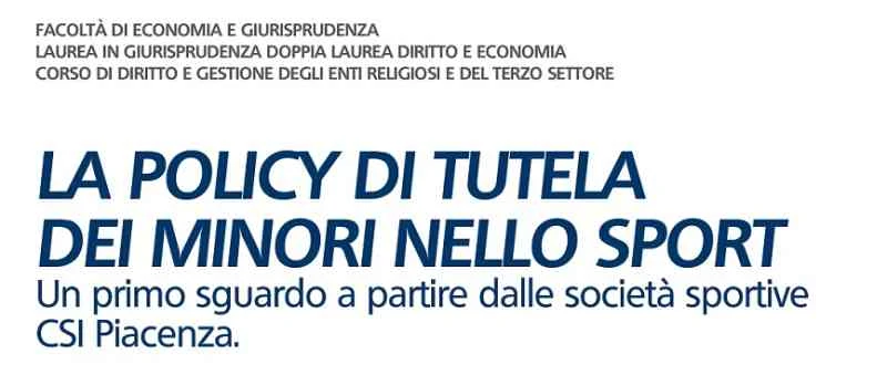 CSI Piacenza, la policy di tutela dei minori nello sport. Un primo sguardo a partire dalle società, è questo il titolo del seminario promosso nella sede dell’Università Cattolica del Sacro Cuore di Piacenza mercoledì 8 maggio dal Corso di diritto e gestione degli enti religiosi e del terzo settore – Facoltà di economia e giurisprudenza, dal Servizio diocesano tutela minori e adulti vulnerabili e dal Centro Sportivo Italiano-Comitato provinciale di Piacenza.