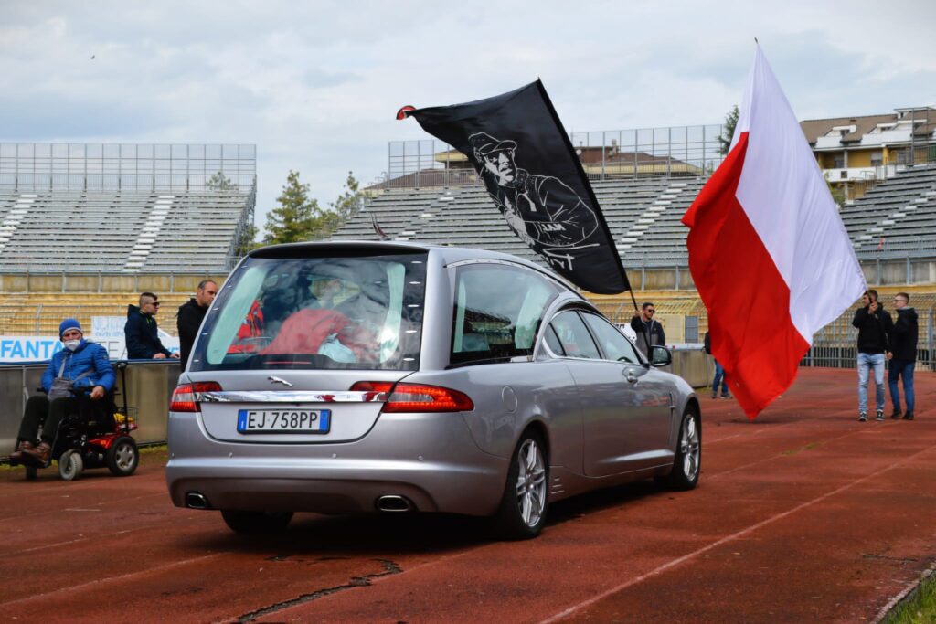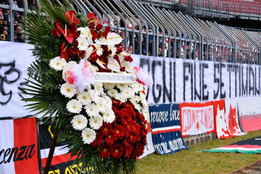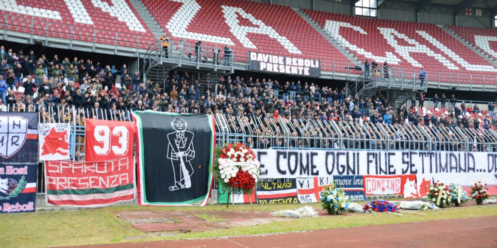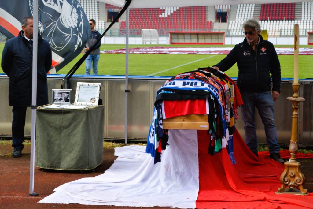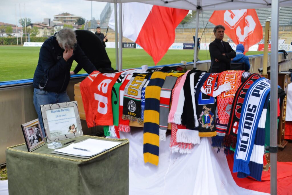 Tutti riuniti allo stadio Garilli di Piacenza per salutare un’ultima volta Davide Reboli. Dopo la cerimonia il feretro ha compiuto un ultimo giro di campo in onore della guida storica del tifo piacentino. Un momento di grande commozione per una figura a cui si lega e si legherà per sempre il nome di Piacenza in tutta Italia e non solo. Centinaia di voci hanno intonato il nome di Davide e un coro che oggi suona più vero che mai: “Quando un giorno morire dovrò, vorrei portare in cielo i miei color” e siamo sicuri che è proprio quello che Davide sta già facendo, abbracciato al fratello Marco.