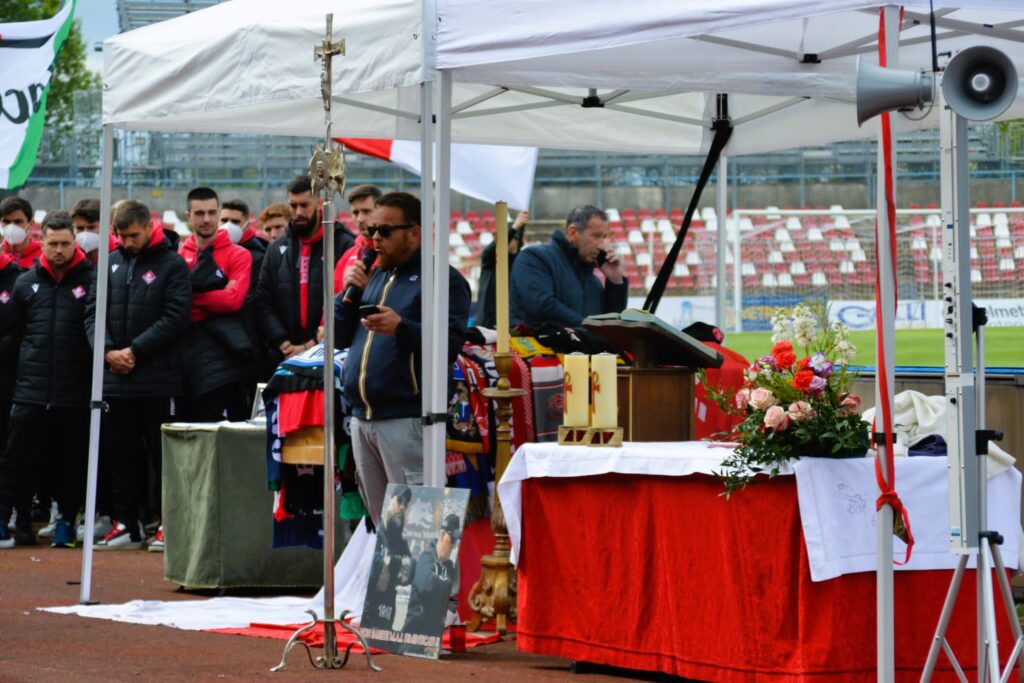 “Una cosa é certa, da oggi un pezzo di cielo sarà biancorosso. Io ti vedevo in curva a tifare, perché spesso c’ero anch’io: sono sicuro che tu abbia già organizzato una tua curva anche lassù”. Queste alcune delle parole pronunciate da don Federico Tagliaferri durante la sua toccante omelia. Un’omelia non banale ma sentita, davanti a oltre 2 mila tifosi provenienti da tutta Italia, anche dalla storica rivale Cremona. Perché gli ultras sono così: rivalità, certo, ma prima ancora valori e rispetto.