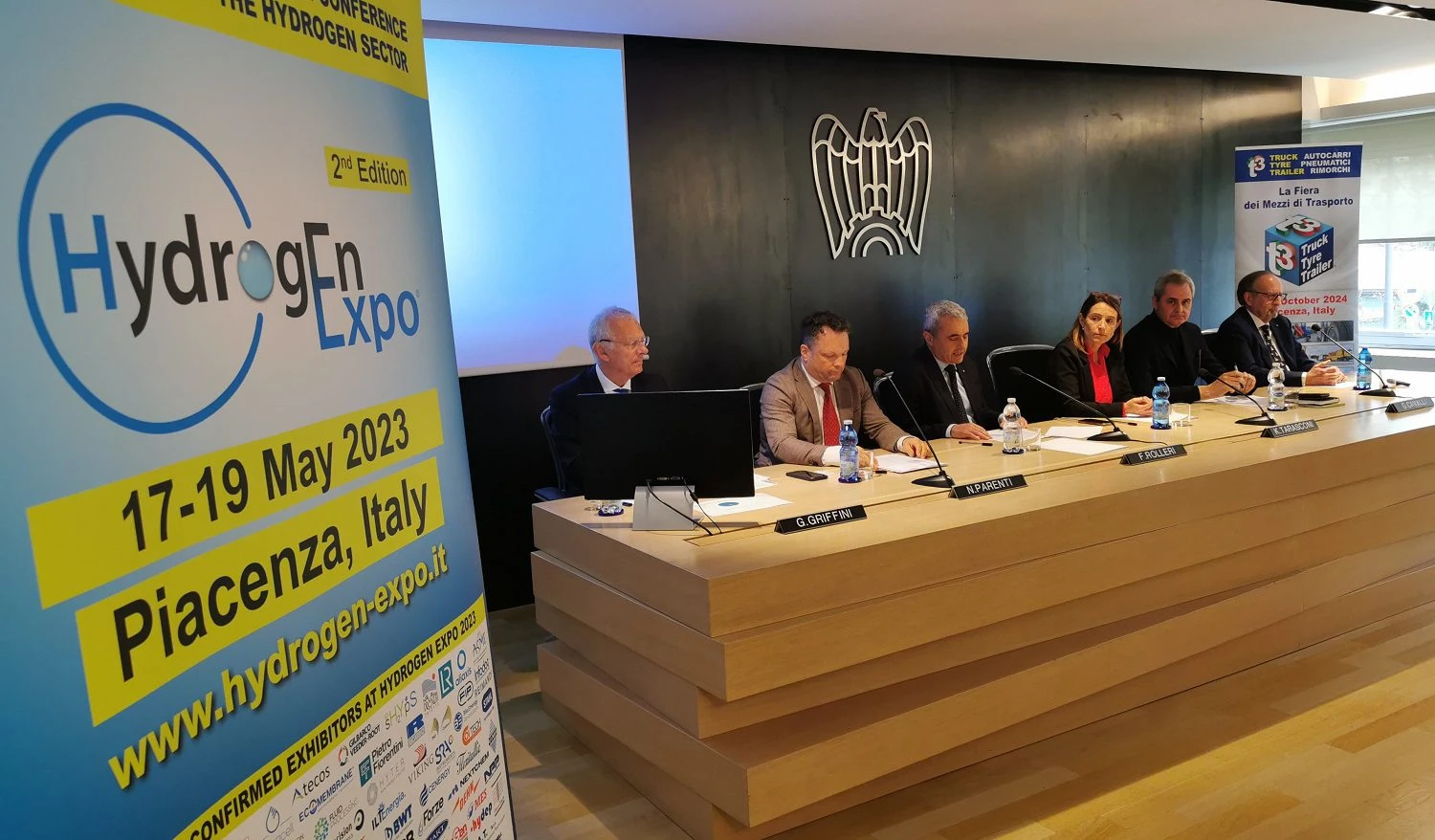 Si è svolta oggi nella Sala conferenze di Confindustria Piacenza la presentazione della 2ª edizione della HYDROGEN EXPO, l’innovativa mostra-convegno italiana dedicata al comparto tecnologico per lo sviluppo della filiera dell’idrogeno, in programma dal 17 al 19 Maggio 2023 negli spazi del Piacenza Expo. A introdurre la più grande manifestazione italiana dedicata al comparto, la sindaca di Piacenza, KATIA TARASCONI, FRANCESCO ROLLERI, presidente di CONFINDUSTRIA PIACENZA, NICOLA PARENTI, vicepresidente di CONFINDUSTRIA PIACENZA con delega all’Energia, GIUSEPPE CAVALLI, presidente di Piacenza Expo, GIANENRICO GRIFFINI, redattore di “ALLESTIMENTI & TRASPORTI” nonché presidente dell’organizzazione internazionale “TRUCK OF THE YEAR” e FABIO POTESTÀ, direttore di MEDIAPOINT & EXHIBITIONS, società organizzatrice dell’evento e.