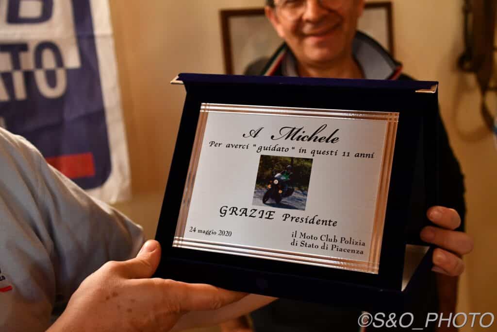 La raccolta fondi si è conclusa domenica scorsa in un incontro conviviale all’agriturismo La Risorgiva di Oddi di Morfasso durante il quale, dopo il saluto del sindaco Paolo Calestani, gli appartenenti alla sede di Piacenza del Moto Club Polizia di Stato hanno donato, a sorpresa, una targa di riconoscenza al Delegato Michele Mauro che guida la Delegazione piacentina dalla sua fondazione, undici anni orsono,