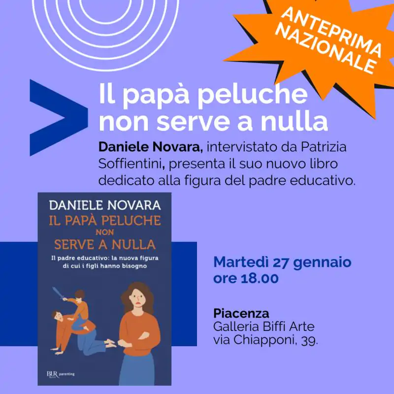 Daniele Novara il 27 gennaio presenta a Piacenza il suo nuovo libro “Il papà peluche non serve a nulla”. Appuntamento alle ore 18 presso la Galleria Biffi Arte, per l’anteprima nazionale dell’uscita del testo.