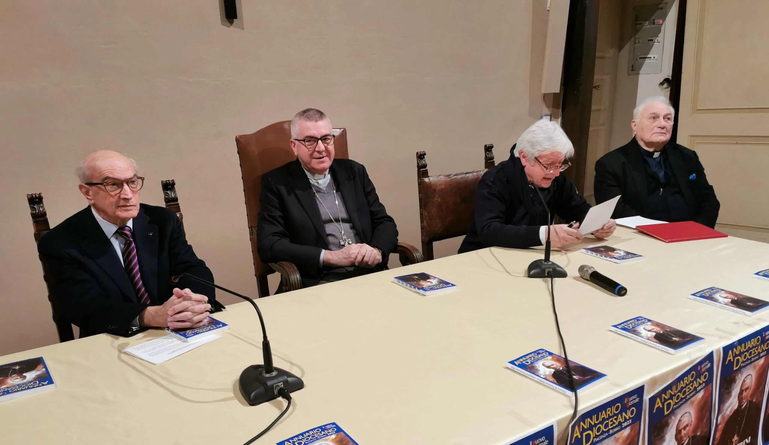 Martedì 17 gennaio nella Sala degli affreschi della Curia vescovile a Piacenza si è svolta la conferenza stampa di presentazione dell’Annuario Diocesano 2023. Sono intervenuti: il vescovo mons. Adriano Cevolotto, il dott. Giuseppe Nenna, presidente del Consiglio di amministrazione della Banca di Piacenza, don Mario Poggi, cancelliere vescovile, e padre Mario Toffari, vicepostulatore della causa di canonizzazione di mons. Giovanni Battista Scalabrini.