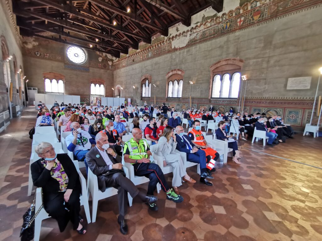 Mentre in piazza Cavalli le associazioni e le forze dell’ordine si presentavano alla cittadinanza attraverso stand informativi, a Palazzo Gotico si è tenuto il convegno “Sei pronto a salvare una vita?”.