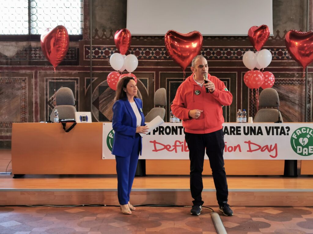 Questa mattina, come detto, le realtà associative, le forze dell’ordine, le istituzioni si sono incontrate prima al Villaggio del Cuore, allestito in piazza Cavalli, per poi raggiungere il Salone di Palazzo Gotico per l’incontro dal titolo “Sei pronto a salvare una vita? Tutti possono usare il DAE”.