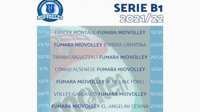 Salvo stravolgimenti quindi, la formazione biancoblu farà il suo esordio in trasferta domenica 17 ottobre sul campo di Montale (Modena) e disputerà la prima gara casalinga il sabato successivo sfidando Esperia Cremona, partita che vede due precedenti nel primo campionato di serie B2 del Consorzio MioVolley.