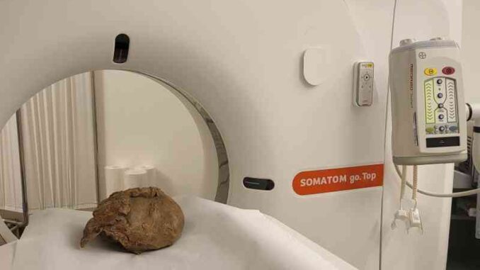 La TAC è stata realizzata (su autorizzazione della Soprintendenza archeologica) perché il reperto, insieme ad un altro esemplare sempre conservato nel Museo geologico, è oggetto di studio da parte dell’Università di Torino.