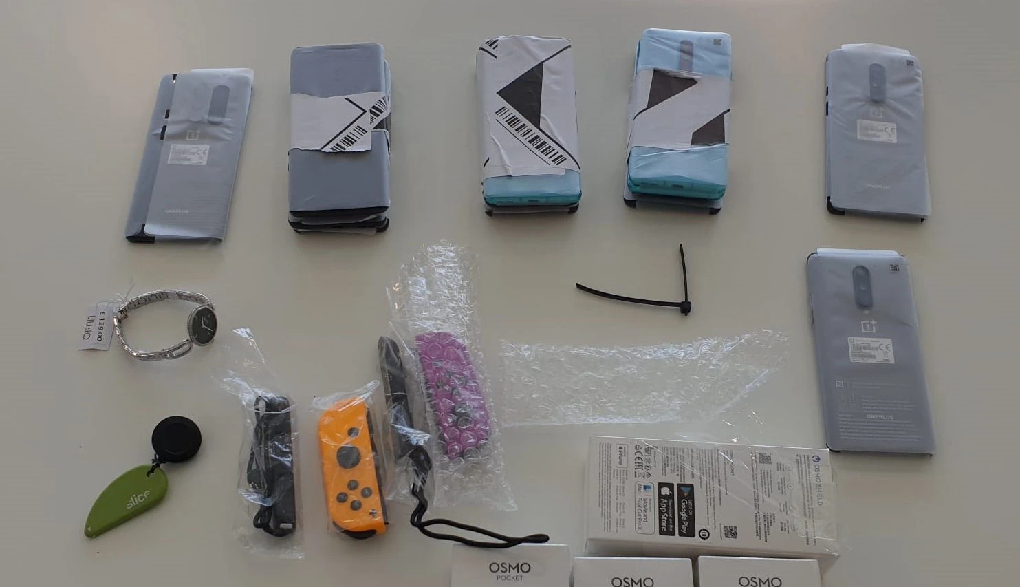 Nel corso degli immediati accertamenti e di una perquisizione all’auto del magazziniere hanno trovato nascosti sotto il sedile anteriore un orologio e 12 smartphone, legati tra loro a gruppi di tre con carta adesiva, rubati lo stesso giorno durante la pausa mattutina.