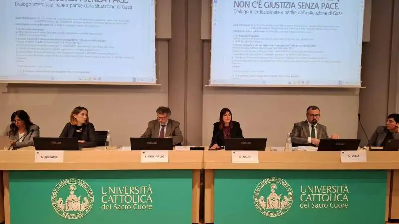 È stato questo il tema al centro del convegno “Non c’è giustizia senza pace, non c’è pace senza giustizia”, ospitato nella sala Piana dell’Università Cattolica. Una giornata di studi, organizzata dal Dipartimento di Scienze giuridiche, per riflettere sul dialogo interdisciplinare, a partire dalla situazione di Gaza. La giornata è stata introdotta dalla riflessione del preside della Facoltà di Economia e Giurisprudenza dell’Università Cattolica del Sacro Cuore, Marco Allena.