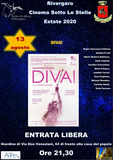 Giovedì 13 agosto si terrà a Rivergaro l’ultimo appuntamento cinematografico dell’estate 2020 con la proiezione del film DIVA! Dedicato a Valentina Cortese una delle attrici di punta del cinema italiano degli anni quaranta.