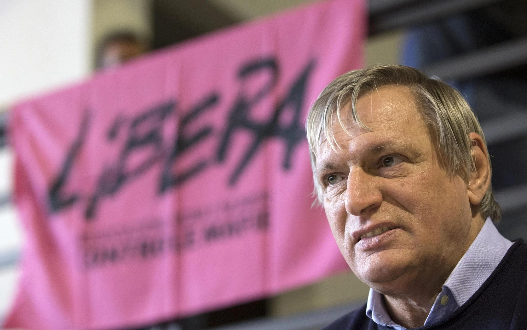 Il presidente di Libera, don Luigi Ciotti, all'interno del Campo dei Miracoli al Corviale in occasione dell'apertura degli Stati generali dell'Antimafia, 23 ottobre 2014 a Roma. ANSA/MASSIMO PERCOSSI