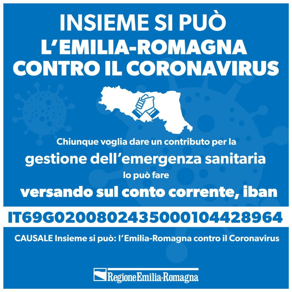 Di fronte a chi già ha fatto donazioni e ai tanti che hanno chiesto di poterlo fare, la Regione ha deciso di dare la possibilità a chiunque voglia di dare un contributo per la gestione dell’emergenza sanitaria legata al Coronavirus, versando sul conto corrente della Protezione civile regionale dell’Emilia-Romagna:
