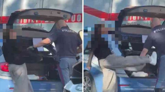 Come detto nulla di grave se non fosse per l’atteggiamento subito mostrato da una donna coinvolta nel sinistro. La scena è stata ripresa dai cellulari dei tanti passanti presenti. Prima tenta di sottrarre il computer portatile alla polizia stradale, poi apre e chiude la portiera della volante apparentemente senza motivo, il tutto sempre rivolgendo frasi ingiuriose nei confronti della polizia.