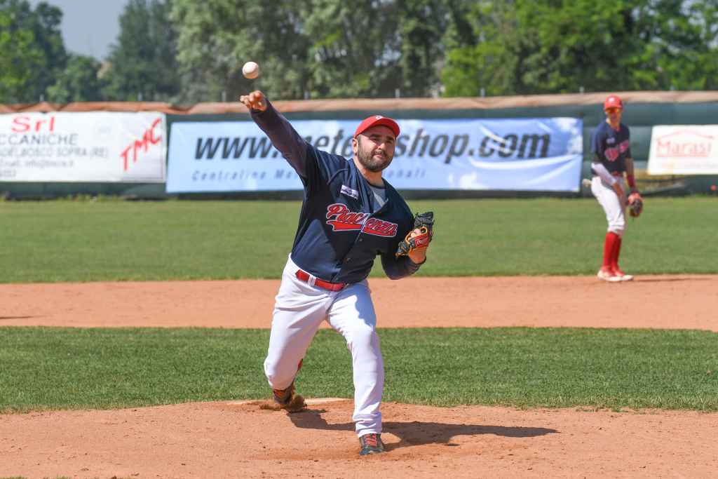 Un ormai pienamente ritrovato Fioretti è il protagonista del pomeriggio quando per sei riprese ipnotizza uno dei migliori line-up del girone. Con lui sugli scudi anche l’attacco piacentino protagonista di 14 battute valide condite dal fuoricamnpo da due punti di Cetti al 3° e dai doppi di Chacon e Calderon. Poviglio racimola due punti al 2° e 3° che in qualche modo gli consentono di restare in partita fino al 4°.